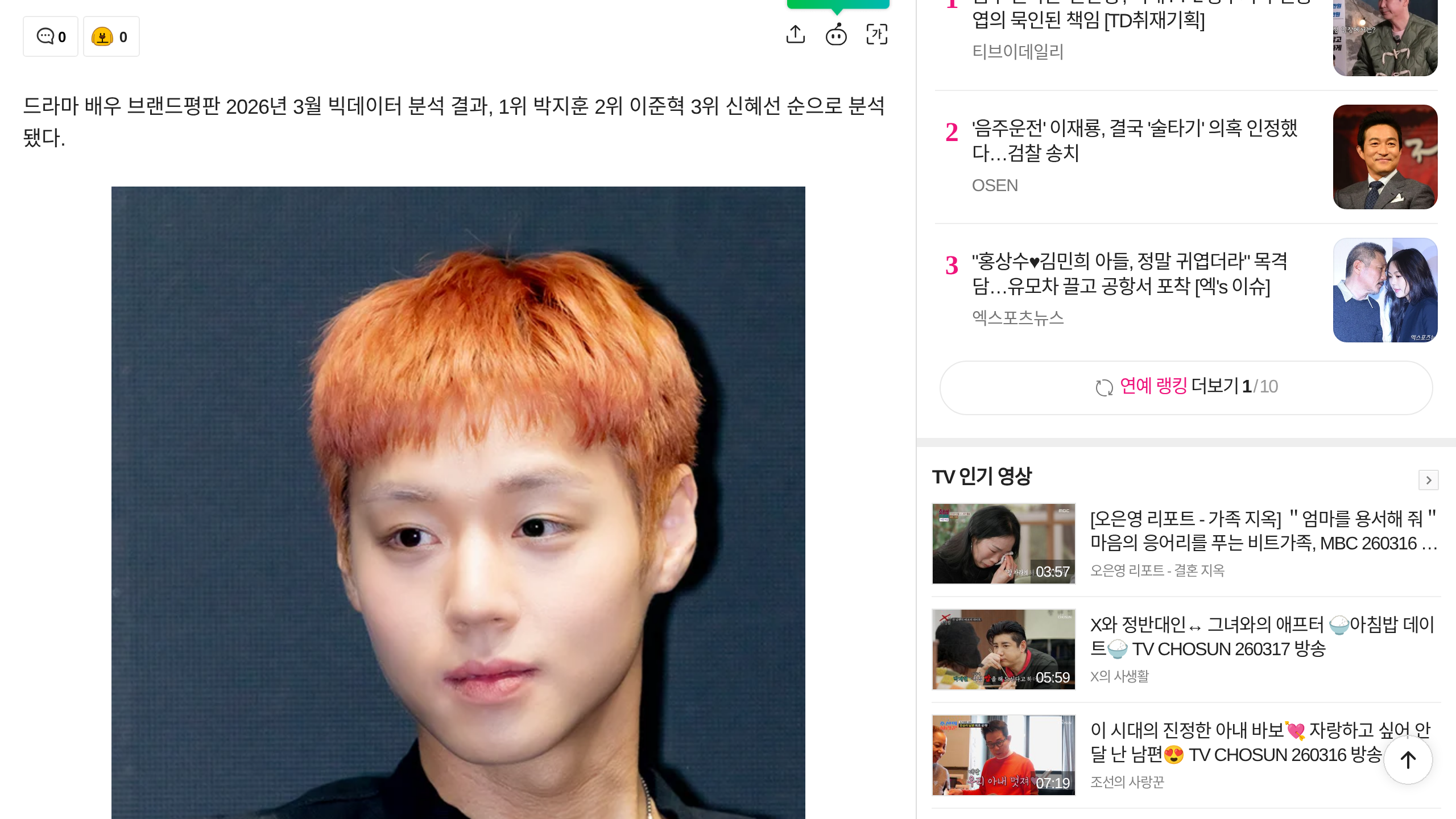 - 배우 박지훈이 2026년 3월 보이그룹 개인 브랜드평판 1위 등극